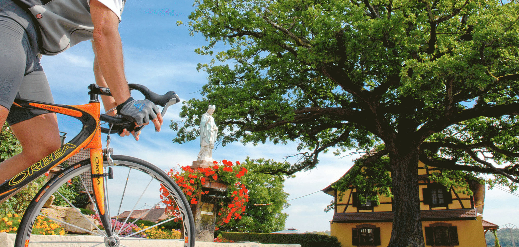 Laissez-vous conduire à travers le maillage serré des villages où quelques kilomètres seulement séparent un clocher d’un autre ; quelques tours de pédales suffisent pour changer de point de vue et de terrain de découverte.